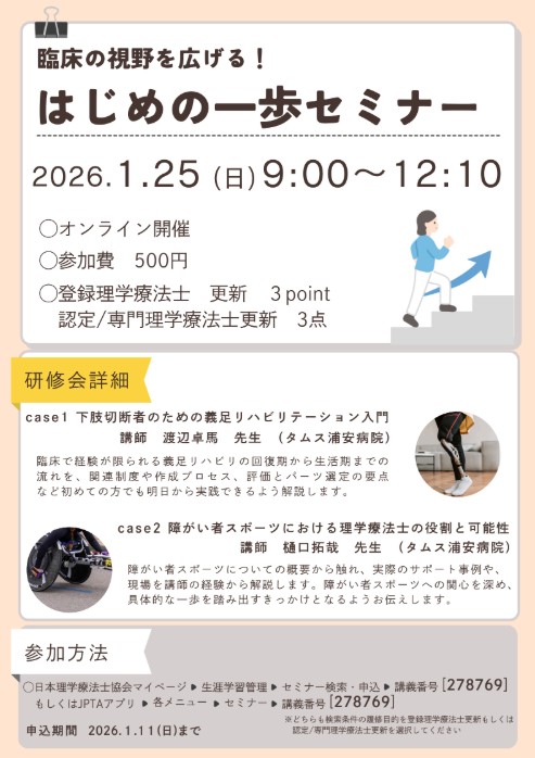 今回の研修は登録理学療法士や認定/専門理学療法士の更新ポイント取得対象のものですが、登録理学療法士が未取得の方も参加可能となっております。幅広い世代の方々からのご参加をお待ちしております。