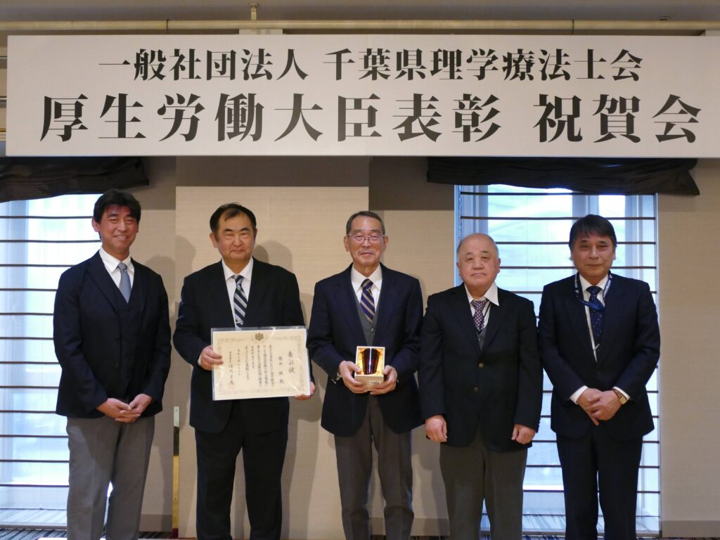 今回、千葉県からは5名の先生方が「理学療法士業務功労者」として厚生労働大臣表彰を受章されました。