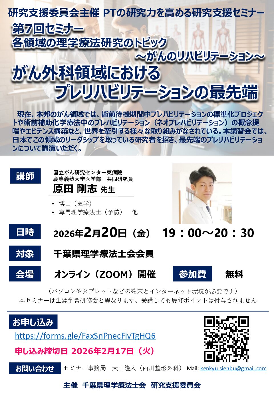 第7回研究支援セミナー「各領域の理学療法研究トピック ~がんのリハビリテーション~」の参加登録が開始となりました