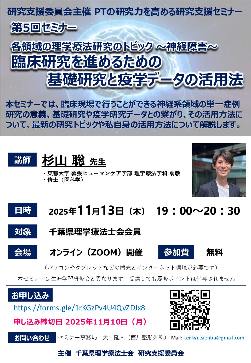 第5回研究支援セミナー「各領域の理学療法研究のトピック ~神経障害~」の参加登録を開始しました